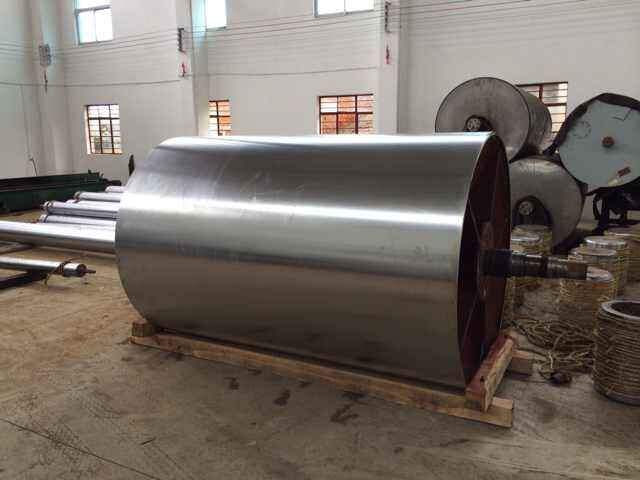 烘缸缸是用鑄鐵制成的兩端有蓋的空心圓筒,由缸體及其兩端的缸蓋組成,外徑多為1000~3000mm,在運(yùn)轉(zhuǎn)過程中,內(nèi)通蒸汽將輸送的紙張烘干燙光。